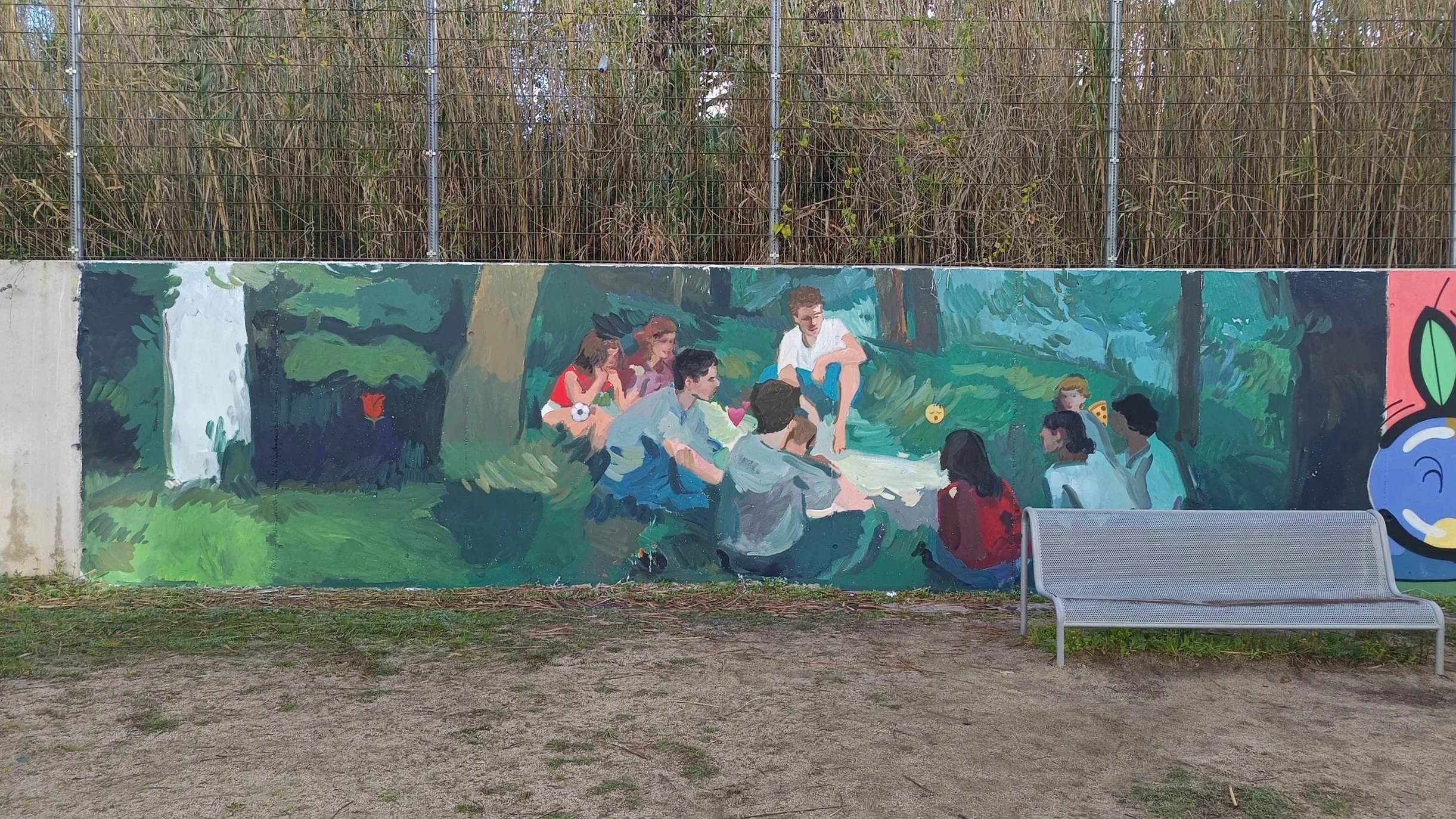 Del 02 al 09 de març hem portat a terme, per segon any consecutiu, un projecte mural amb els alumnes de 4t d'ESO de l'Institut Esteve Albert, a Sant Vicenç de Montalt. Així com l'any passat els alumnes van crear un mural amb l'artista Javier Dirty plé de formes rodones i colors vius, aquest any la muralista Alba Fabre Sacristan ha proposat als alumnes una composició mural d'inspiració impressionista.